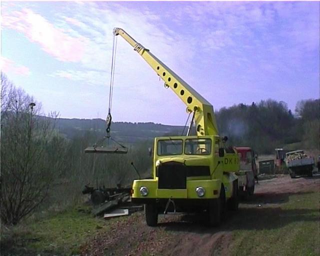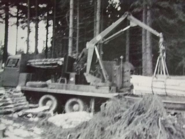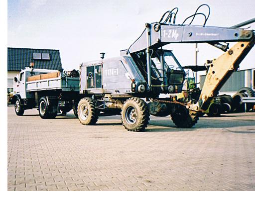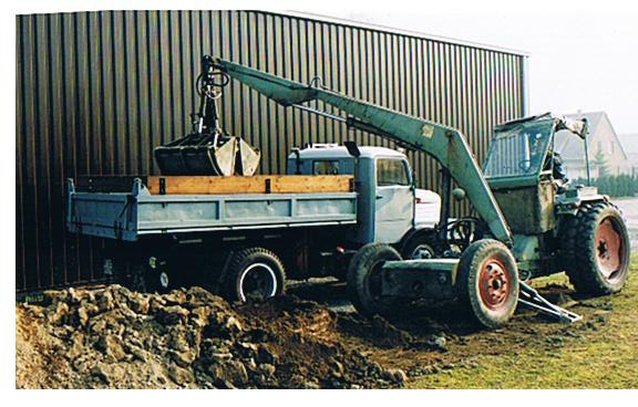 Zu sehen ein S4000-Z  und ein G5 mit Holzgreifer. Beides Einzelstücke, konstruiert und gebaut in der Abteilung Forschung und  Konstruktion im VEB "Rotes Banner" Döbeln.